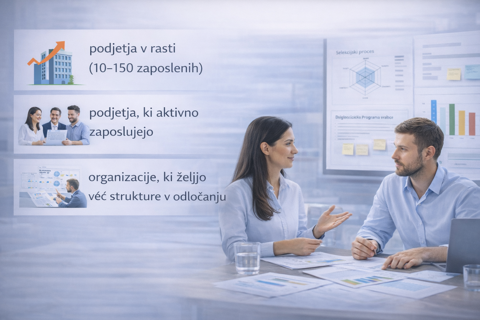 Za podjetja v rasti, ki želijo jasno sliko, kje v procesu zaposlovanja izgubljajo čas, kandidate in denar — in konkreten načrt, kaj popraviti najprej.